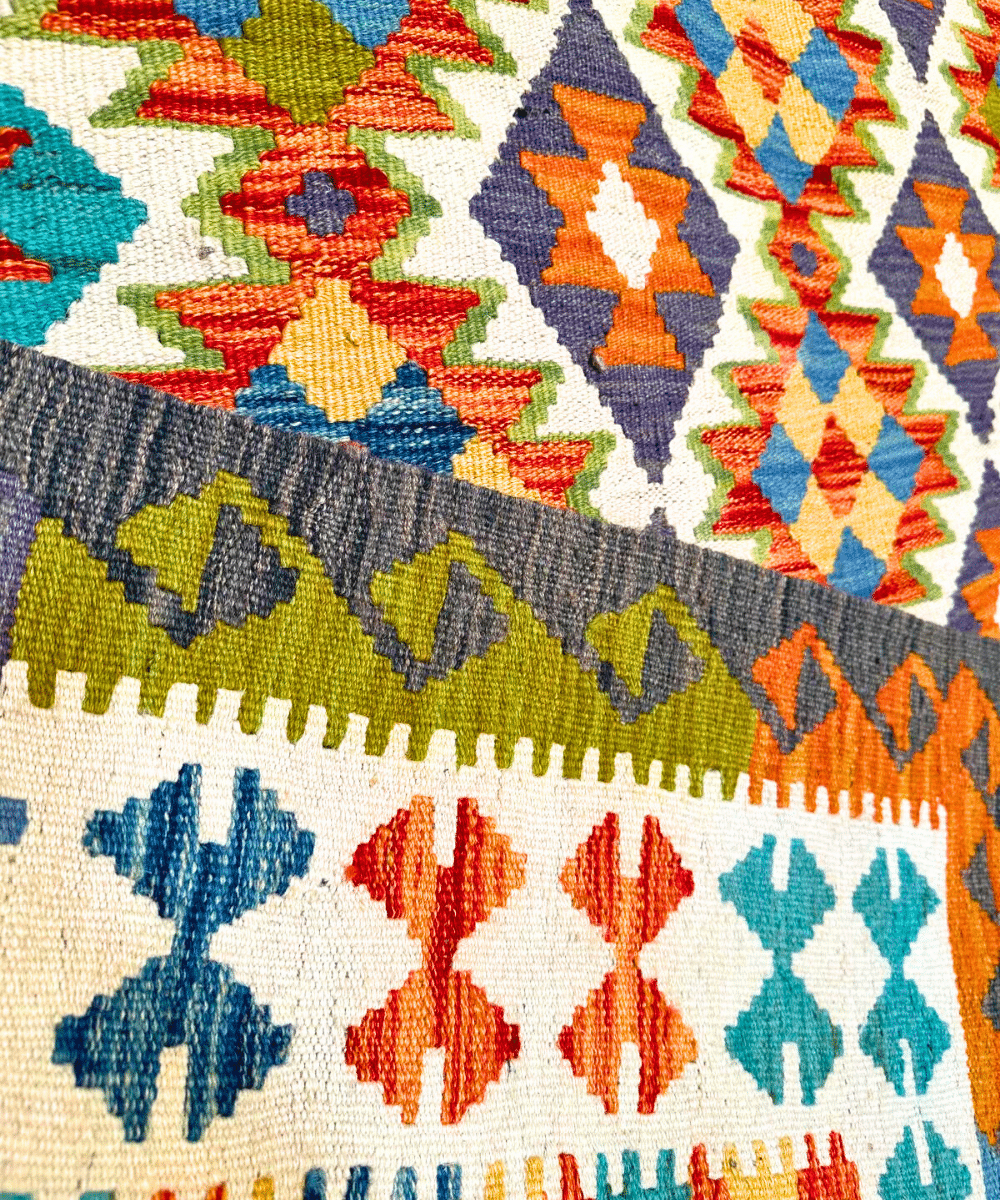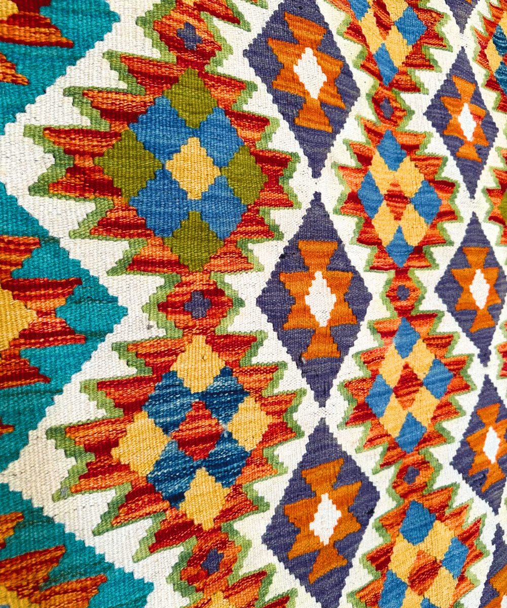 Un tapis kilim afghan aux couleurs vibrantes
