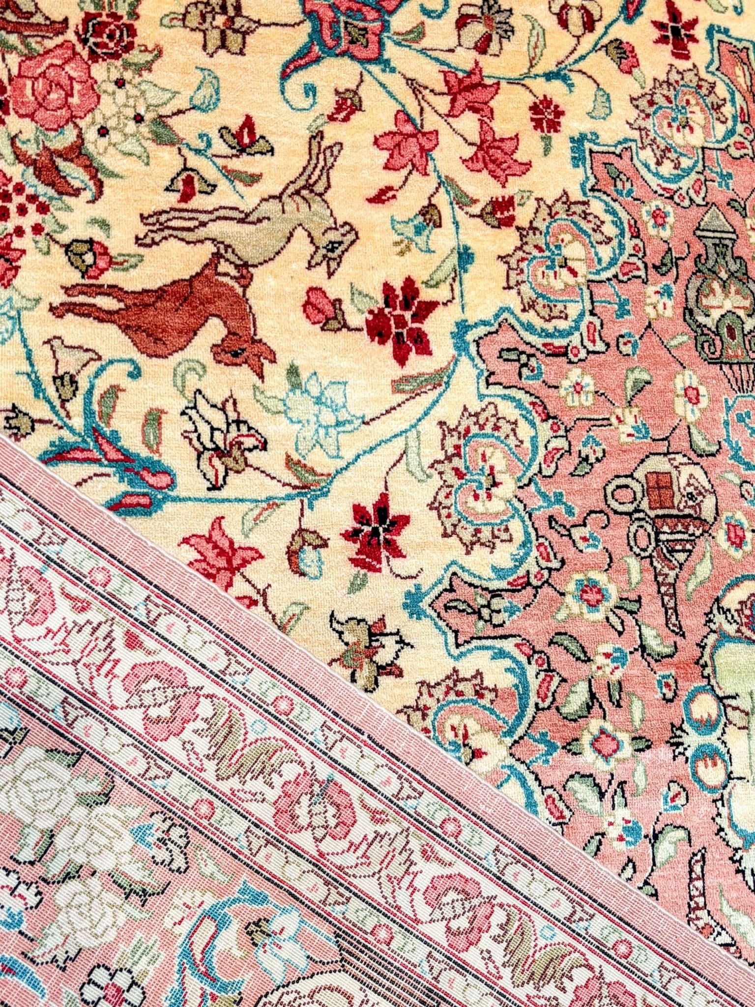 Tapis Ghoum Soie Iran Beige Fait Main 200x138cm